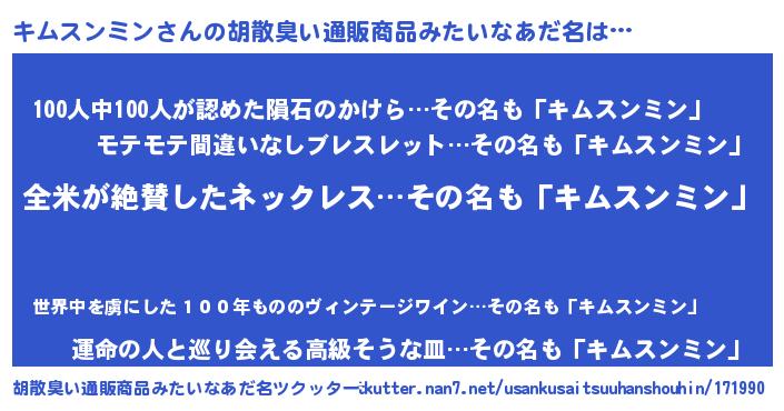 | 意味不明あだ名 | 『とにかく怪しいキムスンミン』 |