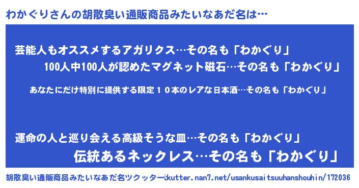 | 意味不明あだ名 | 『住所不定無職わかぐり(39歳)』 |