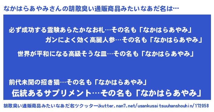 | ヒーロー風カッコイイあだ名 | 『ウルトラなかはらあやみマン』 |