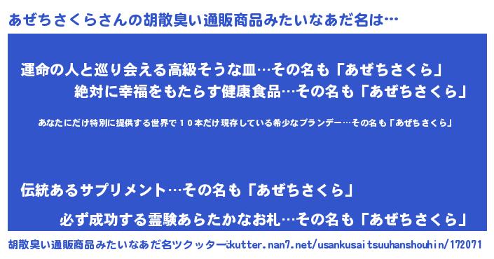 | 欧米人風あだ名 | 『ダレノガレあぜちさくら』 |