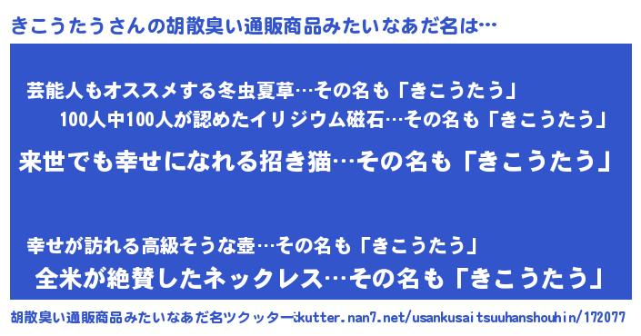 | 意味不明あだ名 | 『永久保存きこうたう』『自称きこうたう』 |