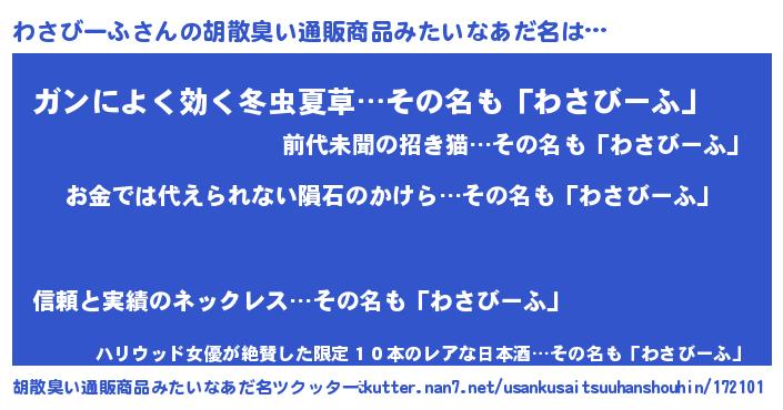 | ヘコむあだ名 | 『わさびーふ(苦笑)』『わさぷりん』 |