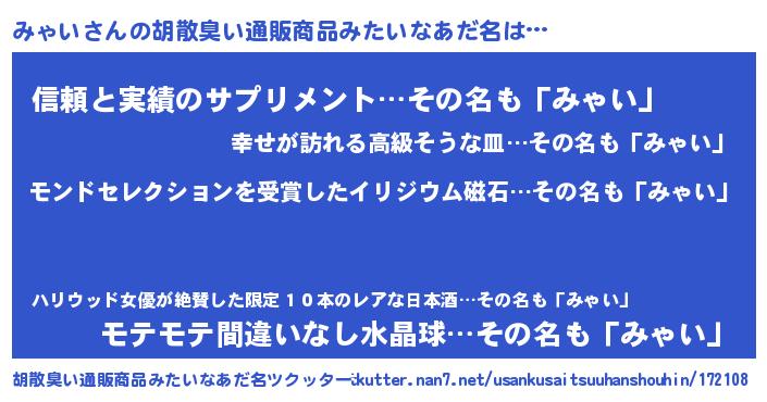 | 伝説のあだ名 | 『救世主となる占い師みゃい』 |