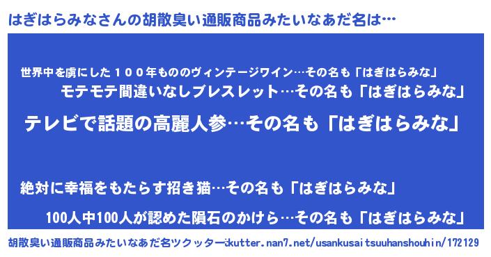 | ヒーロー風カッコイイあだ名 | 『サイバー戦士ハギハラミナ』 |