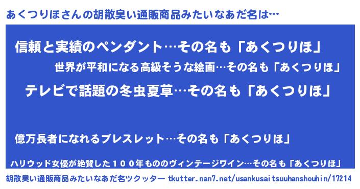 | 肩書あだ名 | 『あくつりほ総統』『あくつりほリーダー』 |