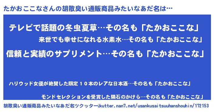 | ヘコむあだ名 | 『たかを』『たかおここな(遠い目)』 |