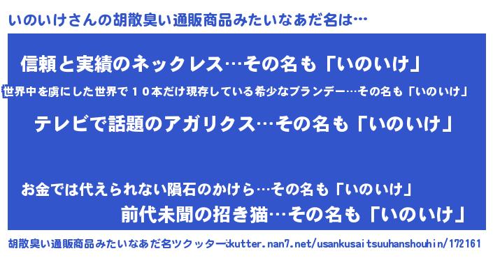 | ヘコむあだ名 | 『いのっ子』『いのいけ(爆)』 |