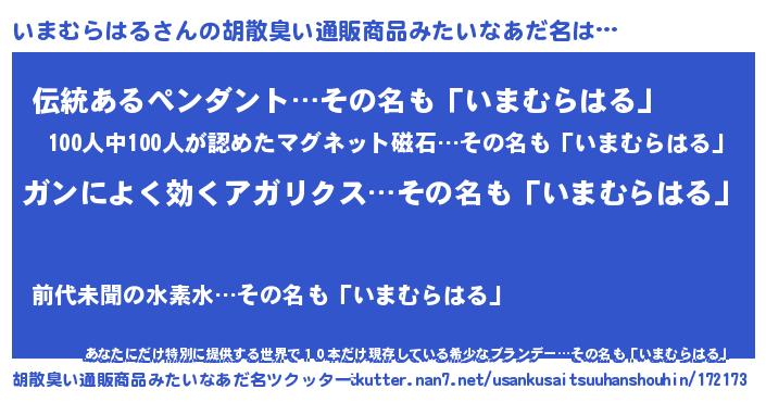 | ヘコむあだ名 | 『いまっ子』『いまむらはる(苦笑)』 |