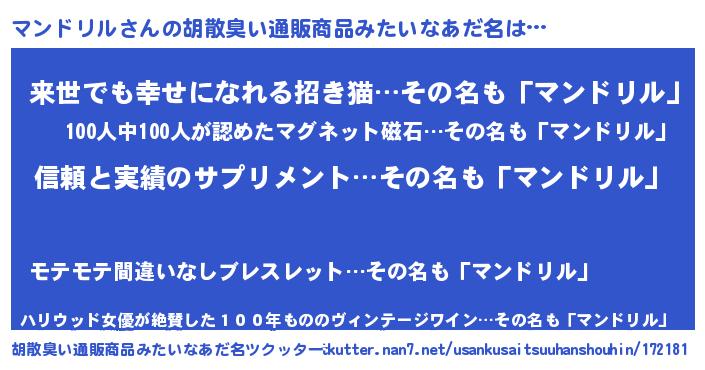 | 意味不明あだ名 | 『とにかく怪しいマンドリル』 |