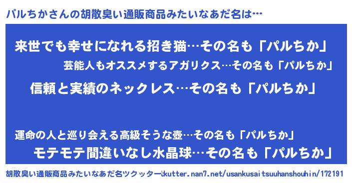 | 意味不明あだ名 | 『とにかく怪しいパルちか』 |