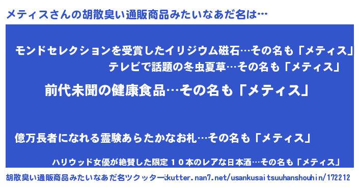 | ヘコむあだ名 | 『メティス(爆)』『メテもー』 |
