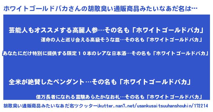 | 意味不明あだ名 | 『住所不定無職ホワイトゴールドバカ(40歳)』 |