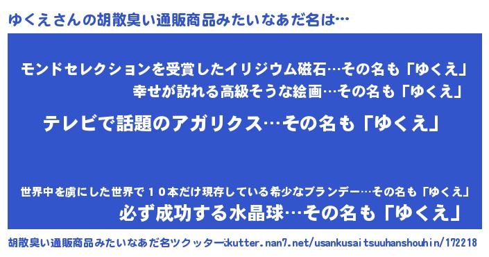 | 意味不明あだ名 | 『自称ゆくえ』『眠気覚ましガムゆくえ味』 |