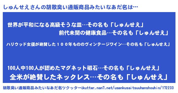 | 欧米人風あだ名 | 『ダレノガレしゅんせえ』 |