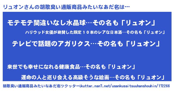 | ヘコむあだ名 | 『リュふぇ~』『なまこ酢』『リュを』 |