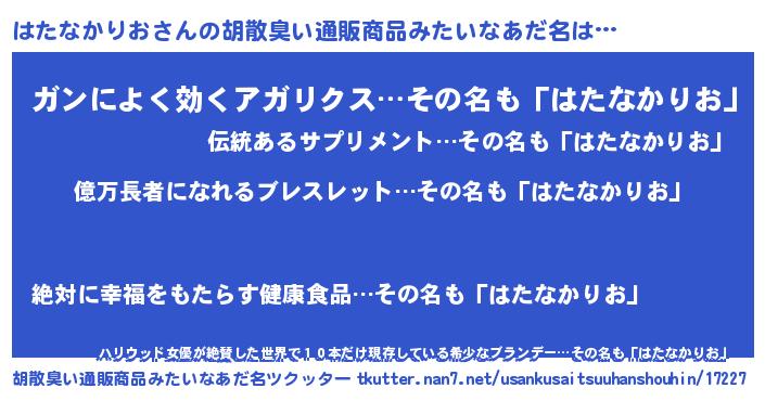 | 肩書あだ名 | 『はたなかりお社長』『はたなかりお艦長』 |