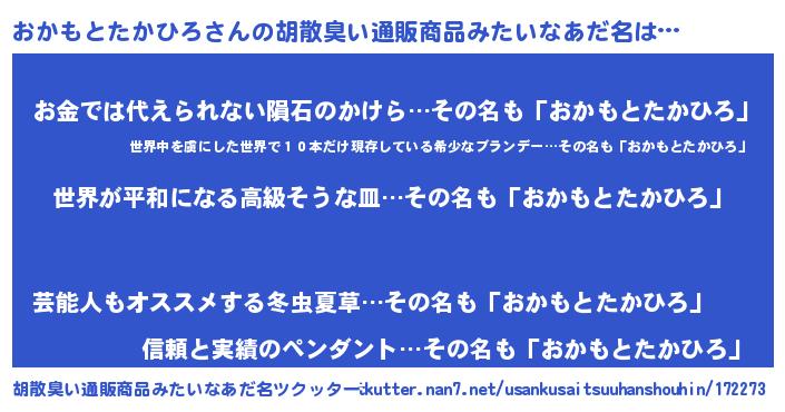 | 欧米人風あだ名 | 『おかもとたかひろクリステル』 |
