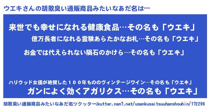 | ヘコむあだ名 | 『ウエキ(震え声)』『ウエにゅー』 |
