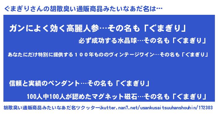 ぐまぎりさんの胡散臭い通販商品みたいなあだ名をツクッター!
