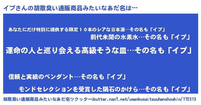 | 意味不明あだ名 | 『イプフォーエバー』『永久保存イプ』 |