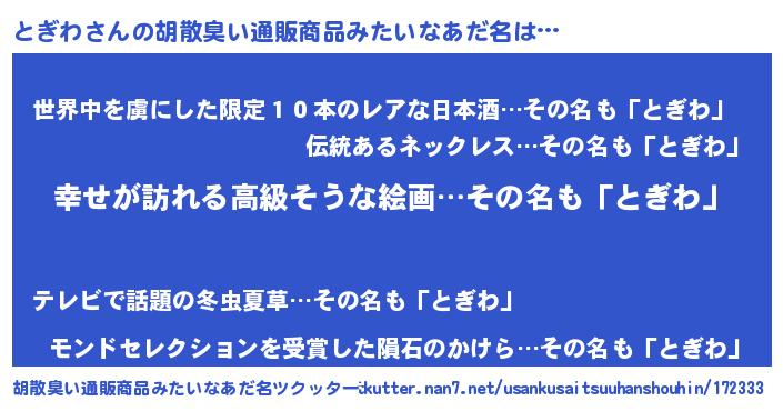 とぎわさんの胡散臭い通販商品みたいなあだ名をツクッター!