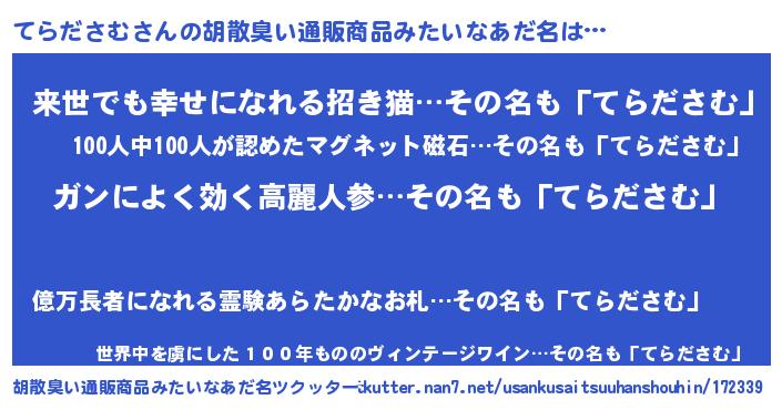| 意味不明あだ名 | 『自称てらださむ』『永久保存てらださむ』 |