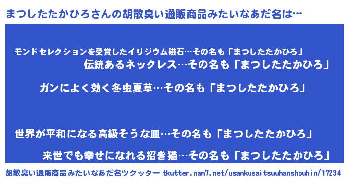 | ヘコむあだ名 | 『まつしたたかひろ(遠い目)』『まつ太郎』 |