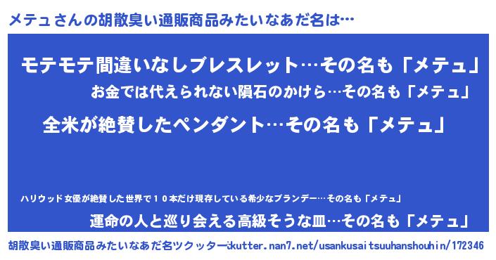 | ヘコむあだ名 | 『メテぷりん』『メテふぇ~』 |
