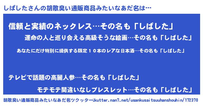 | 意味不明あだ名 | 『住所不定無職しばした(14歳)』 |