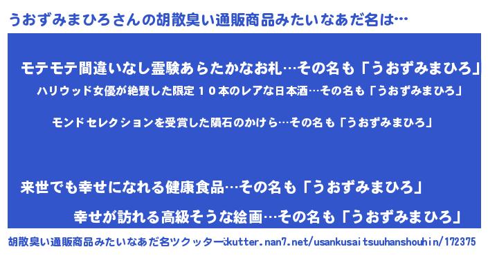 | ヒーロー風カッコイイあだ名 | 『慈愛の使者うおずみまひろ』 |
