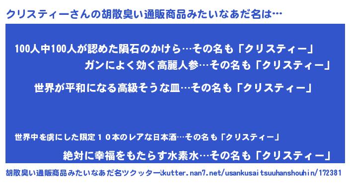 | 意味不明あだ名 | 『クリスティーフォーエバー』 |