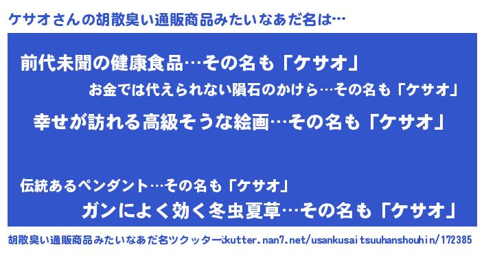 | ヒーロー風カッコイイあだ名 | 『ウルトラケサオマン』『ネオケサオ』 |