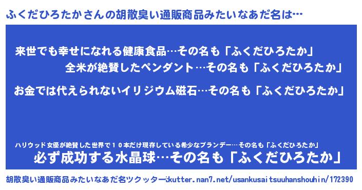 | ヘコむあだ名 | 『ふくだひろたか(爆)』『ふくにゅー』 |