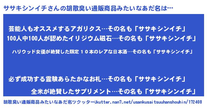 | 欧米人風あだ名 | 『ダレノガレササキシンイチ』 |