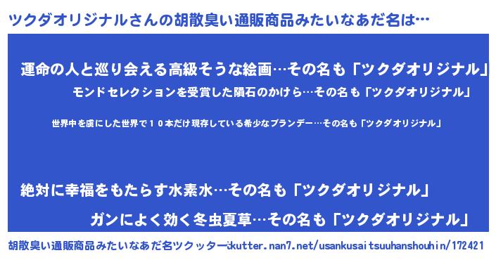 | 意味不明あだ名 | 『住所不定無職ツクダオリジナル(91歳)』 |
