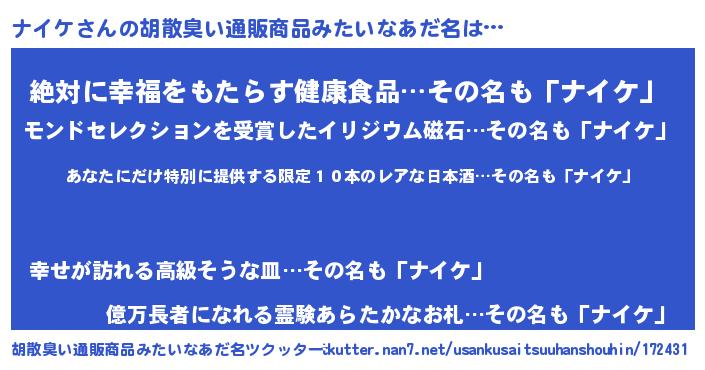 | 意味不明あだ名 | 『住所不定無職ナイケ(53歳)』 |