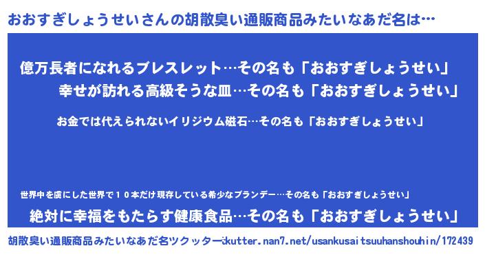 | ヒーロー風カッコイイあだ名 | 『慈愛の使者おおすぎしょうせい』 |