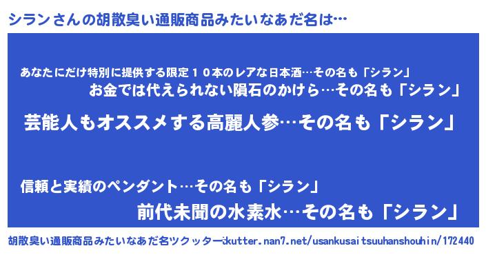 | 意味不明あだ名 | 『自称シラン』『住所不定無職シラン(77歳)』 |