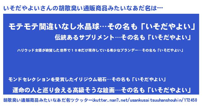 | 意味不明あだ名 | 『住所不定無職いそだやよい(89歳)』 |