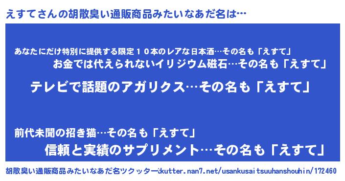 | 意味不明あだ名 | 『自称えすて』『住所不定無職えすて(39歳)』 |