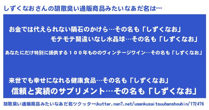 | ヘコむあだ名 | 『しずお』『しずっふぃ~』『つくし』 |