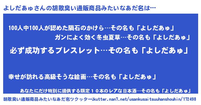 よしだあゅさんの胡散臭い通販商品みたいなあだ名をツクッター!