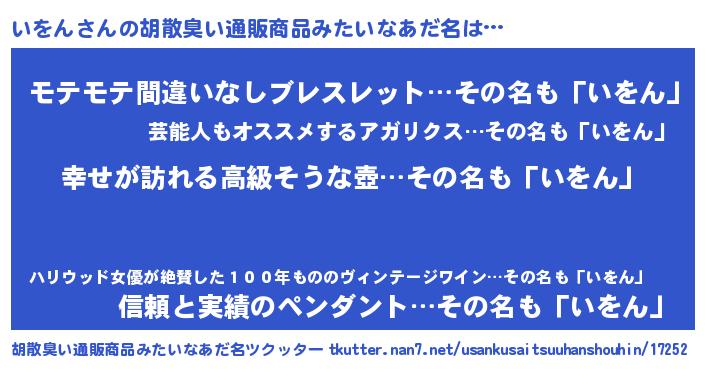 | 男性向けラノベタイトル風あだ名 | 『緋弾のイヲン』『いをんの憂鬱』 |