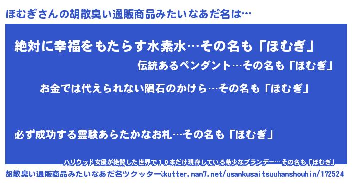 | 意味不明あだ名 | 『眠気覚ましガムほむぎ味』 |