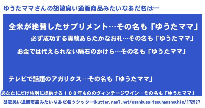 | 男性向けラノベタイトル風あだ名 | 『ノーゲーム・ノーユウタママ』 |