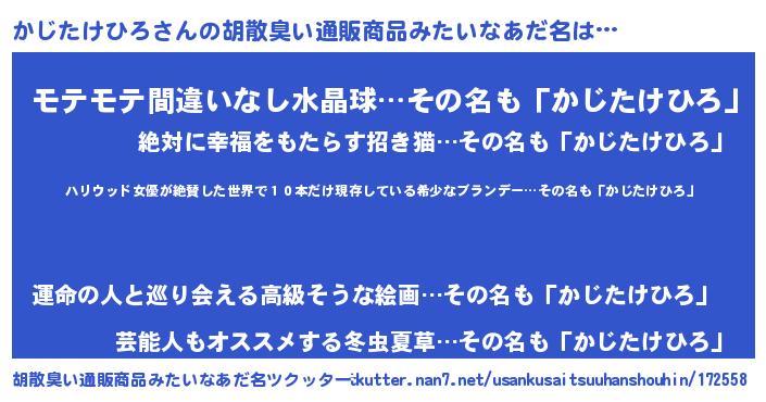 | ヘコむあだ名 | 『かじっふぃ~』『かじたけひろ(爆)』 |