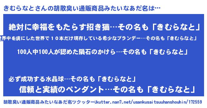 | ヘコむあだ名 | 『きむらなと(遠い目)』『きむお』 |