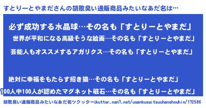 | ヘコむあだ名 | 『すとにゅー』『酢こんぶ』『すとお』 |