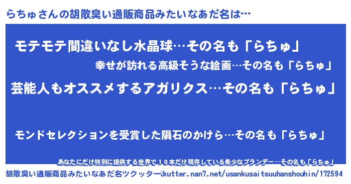 | 恥ずかしいあだ名 | 『ラチュデラックス』『プリティーらちゅ』 |