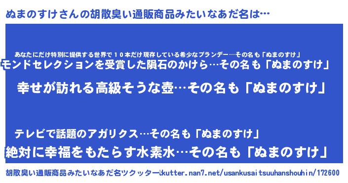 | 意味不明あだ名 | 『めかぶ科ぬまのすけ属』 |
